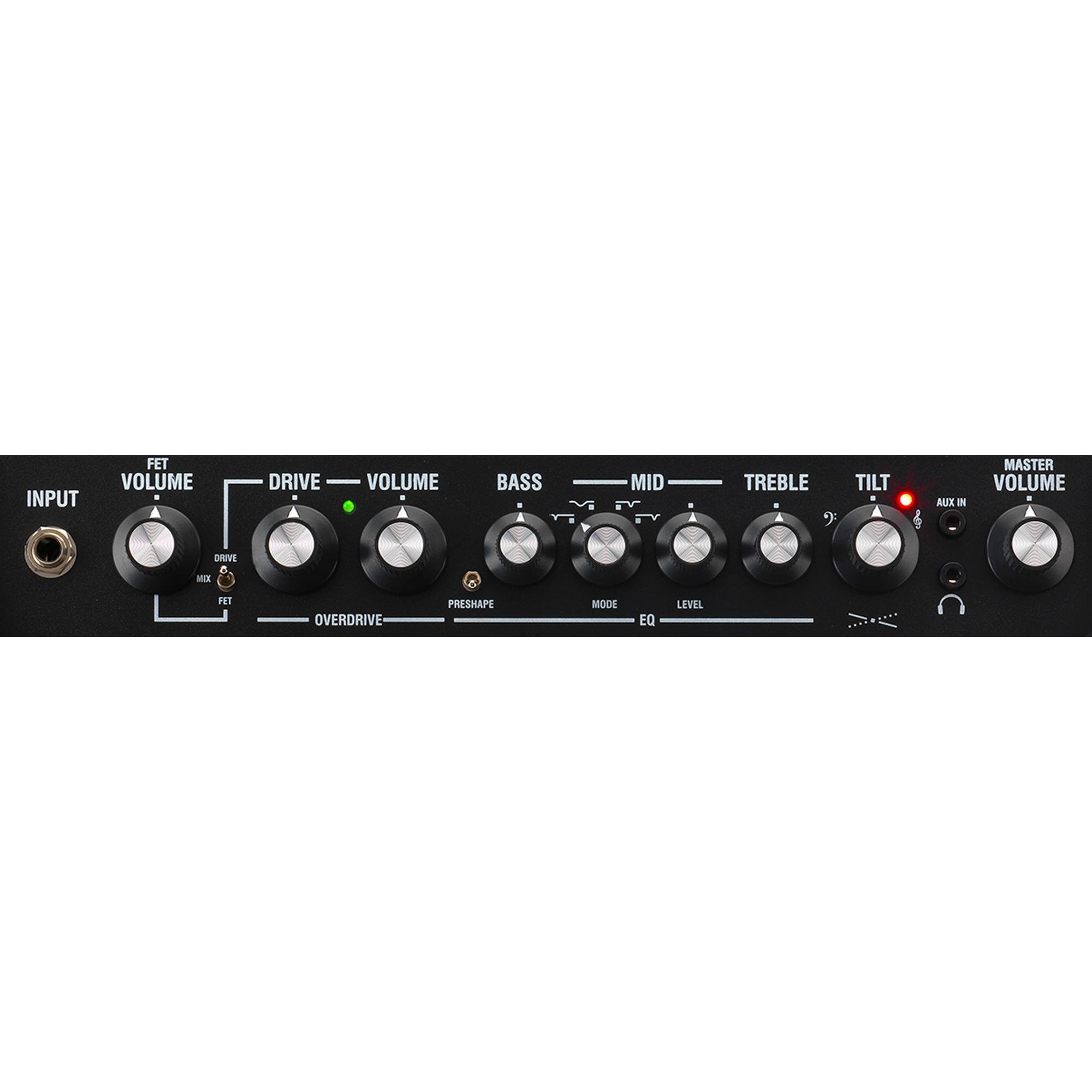 • Preshape Switch, fornece um corte de frequência média para um som escavado enquanto empurra os topos e graves.